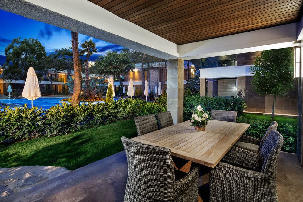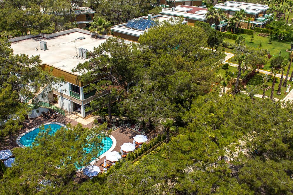 Огромная зеленая территория отеля состоит из основного здания и вилл. Вся территория утопает в цветах и повсюду слышны голоса птиц. Эксклюзивные виллы, расположенные на первой береговой линии, отвечают высоким стандартам класса VIP. Отель рекомендован для семейного отдыха с детьми.